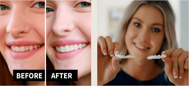 The #1 snap-on solution trusted by over 100,000 happy customers! Designed by real dentists, these 100% custom-made veneers hide stains, gaps, missing, or chipped teeth in seconds — no dentist visit, no drilling, no pain. Enjoy a natural, confident smile that looks and feels real, backed by a 60-day money-back guarantee and a 3-year warranty. Smile brighter, feel better, and show off the best version of yourself today.